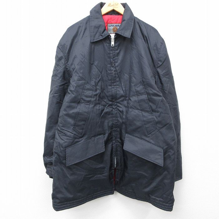 > XL/古着 長袖 ジャケット メンズ 90s ロング丈 紺 ネイビー 内側キルティング 24oct03 中古 アウター