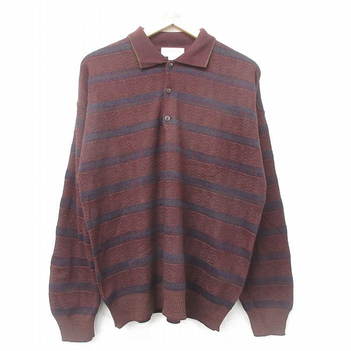 - XL/古着 長袖 セーター メンズ 90s フェアアイル 襟付き エンジ他 24oct16 中古 ニット トップス