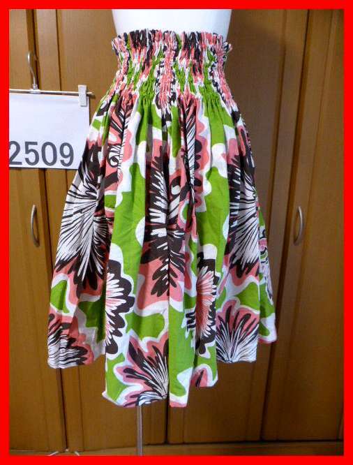 - 送料無料★パウスカート グリーン系 ゴムテンション状態も良好 フラダンス アロハ