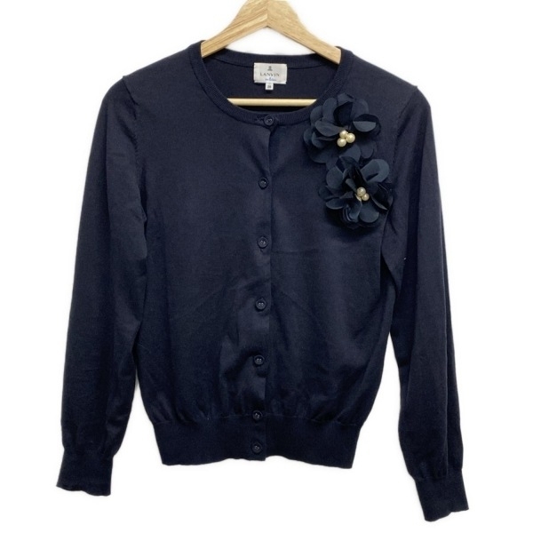 > ランバンオンブルー LANVIN en Bleu カーディガン サイズ38 M - 黒 レディース 長袖/フェイクパール/フラワー(花) トップス