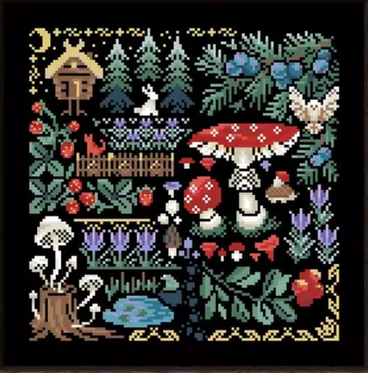> 【送料無料・匿名配送】クロスステッチキット Mysterious forest ミステリアスフォレスト キノコ きのこ14CT 刺繍