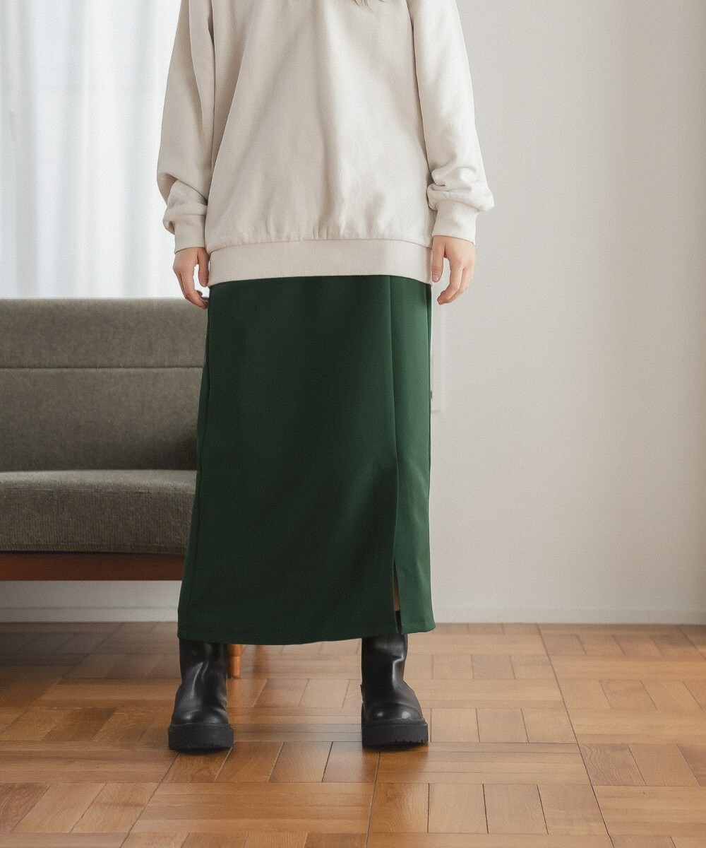 > 新品グローバルワークAND YUA ANYスリットナロースカート160cm グリーンSサイズの大人でも