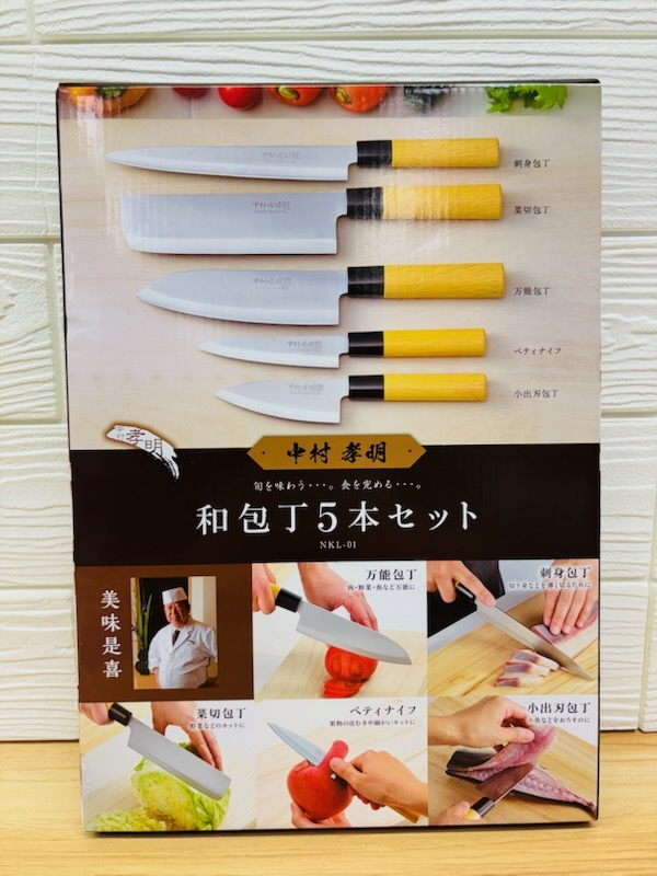 - A662 カクセー 料理の鉄人 中村孝明 和包丁 5本セット ステンレス製 刺身 菜切 万能包丁 ペティナイフ 小出刃 軽くて扱いやすい 錆びにくい