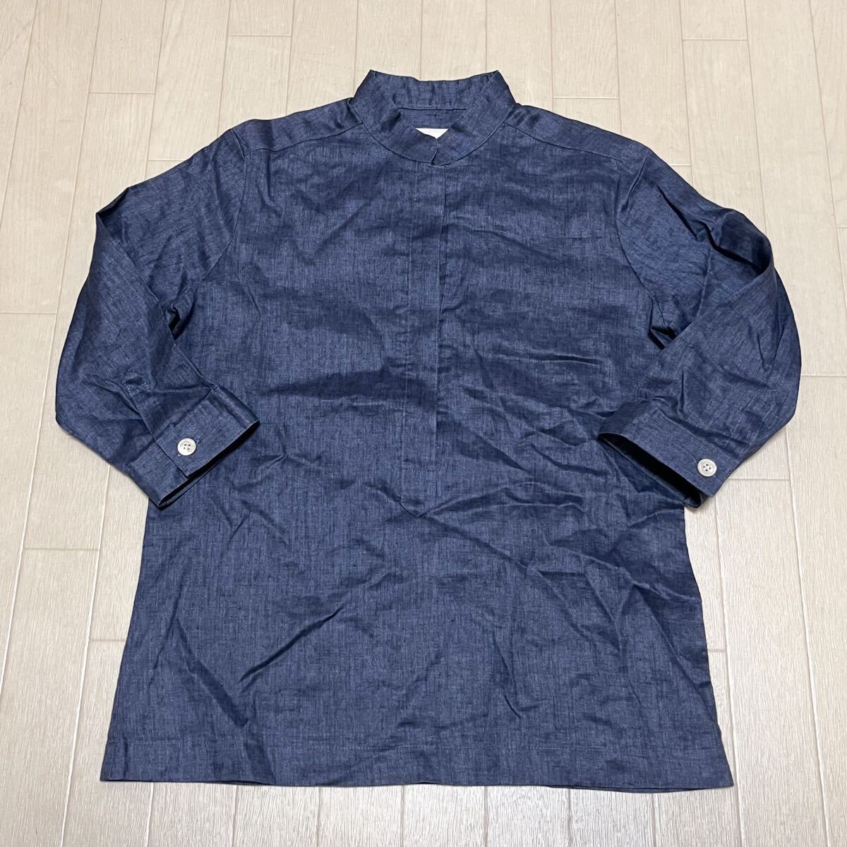 - 和844★ NOLLEY'S WEEKEND ノーリーズ 7分袖 ハーフボタン シャツ プルオーバー バンドカラー 比翼 リネン ネイビー レディース