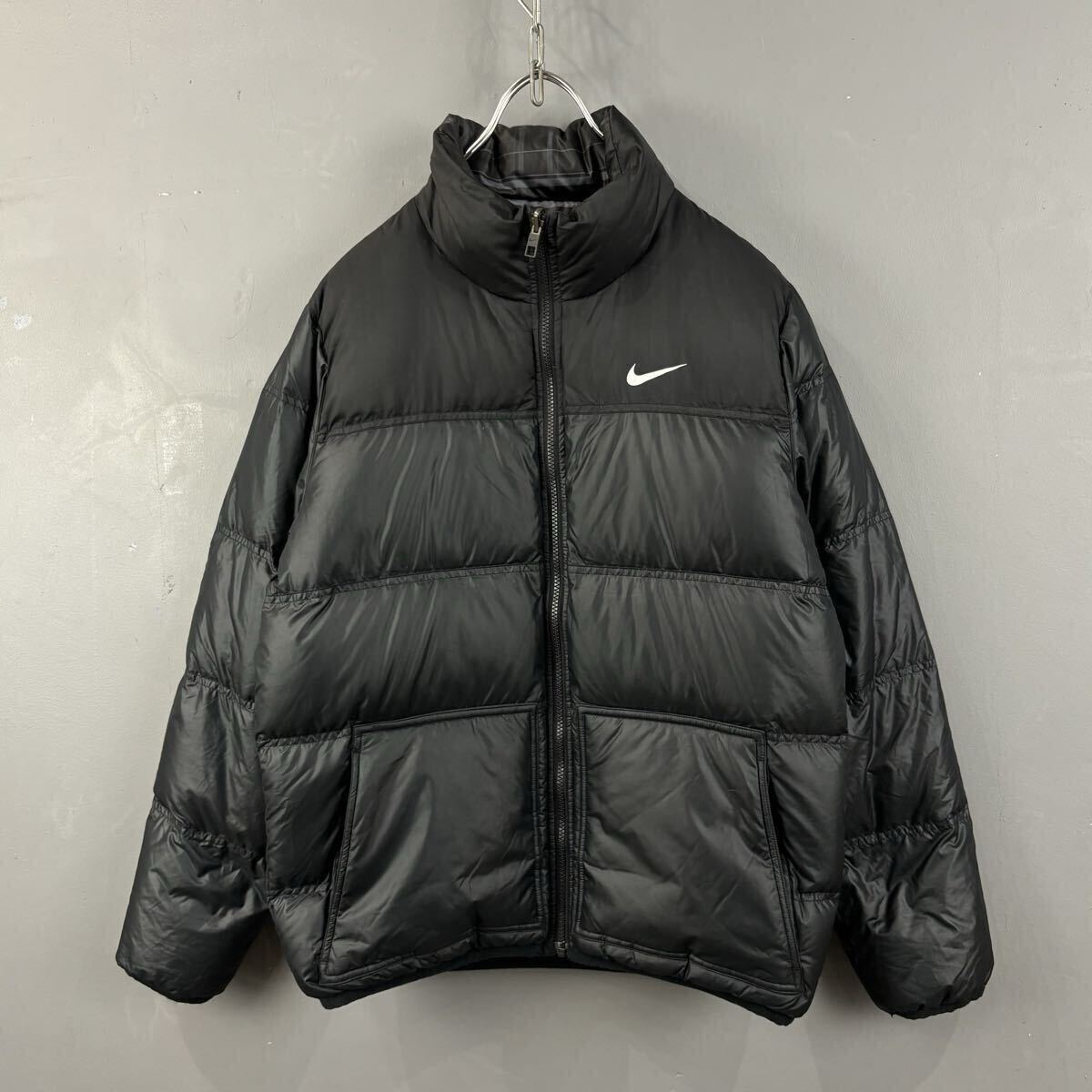 > NIKE ナイキ ダウンジャケット ブルゾン リバーシブル ジップアップ 防寒 550 フィルパワー 無地/チェック柄 ブラック メンズ 484509-010