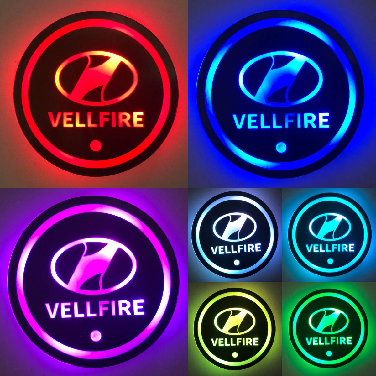 > ヴェルファイア車簡単カスタム 光るLEDコースター 2個セット ドリンクホルダー 車内装アクセサリー VELLFIRE