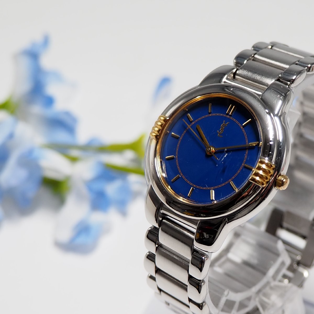 > イヴサンローラン YVESSAINTLAUREN ネイビー文字盤 メンズ 腕時計 H182 中古