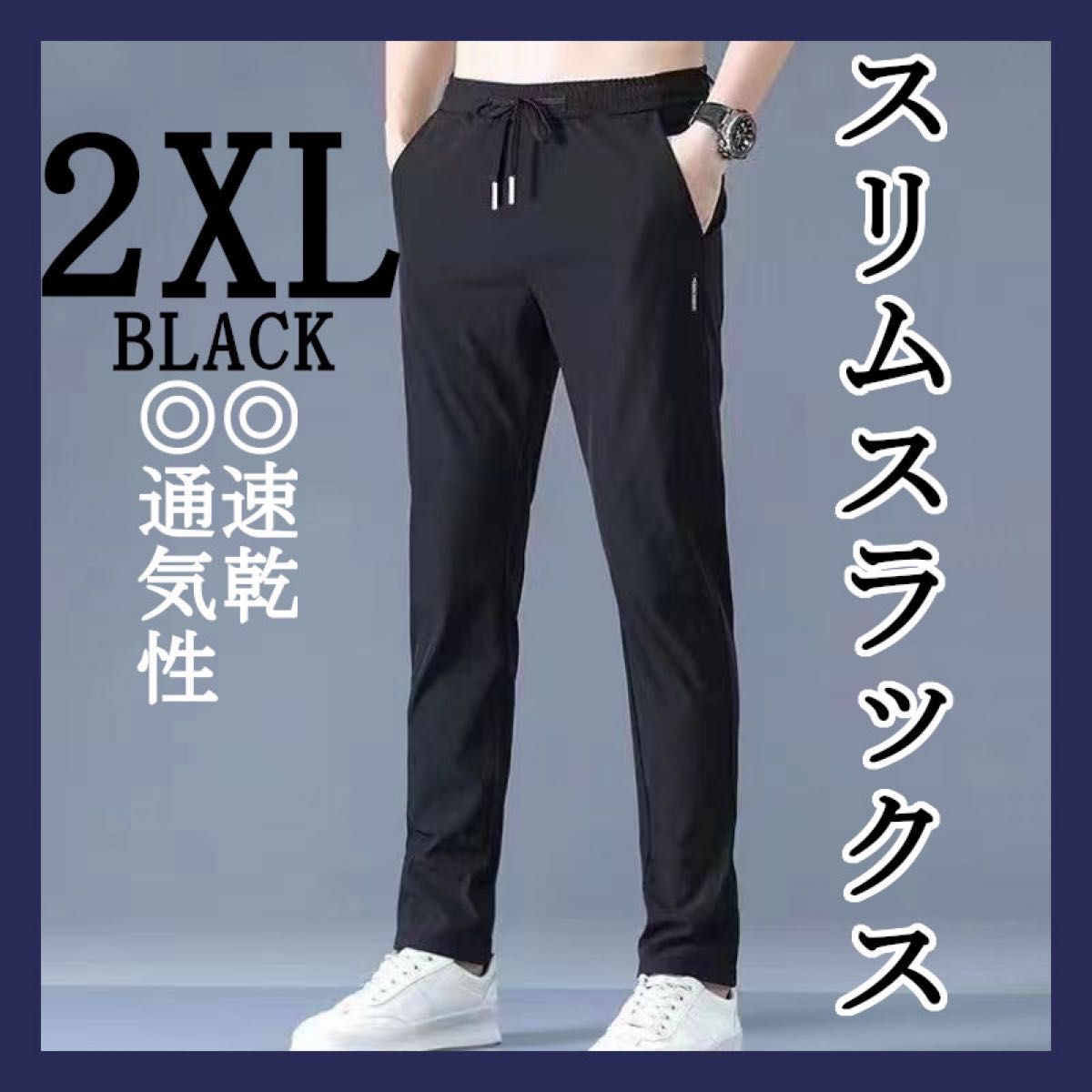 - 2XL ブラック スリムスラックス 速乾 通気性 ジョガーパンツ スウェットパンツ