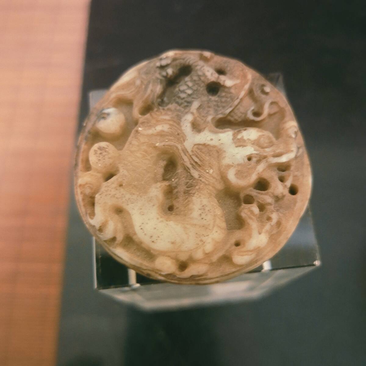 - £‰ 飾物 ‰£ 希少唐物 手彫 玉製 神獣紋 八卦十二支紋 玉珮 掛飾 項鏈