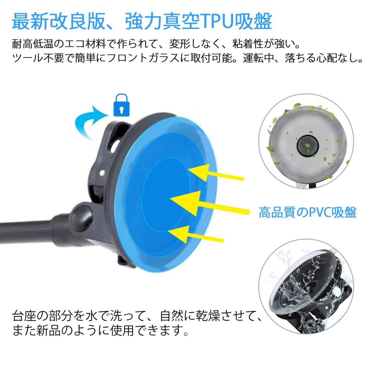- 強力吸盤 車用タブレット&スマホホルダー