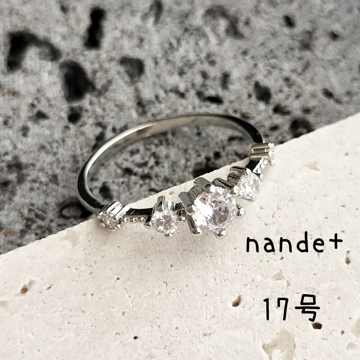 - 17号■華奢リング キュービックジルコニア5粒 指輪 アクセサリー ジュエリー SILVERシルバー
