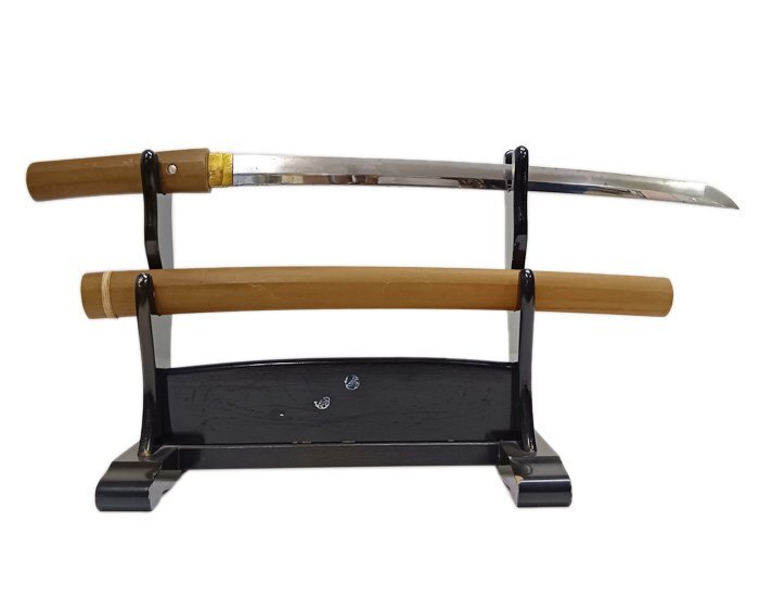 > 銘 平安城石道正俊 わきざし 脇差 日本刀 小刀 小太刀 刀剣 短刀 名刀 白鞘 銅地金着ハバキ 武具 歴史物 刃渡り48.8cm 反り0.8cm 登録証有