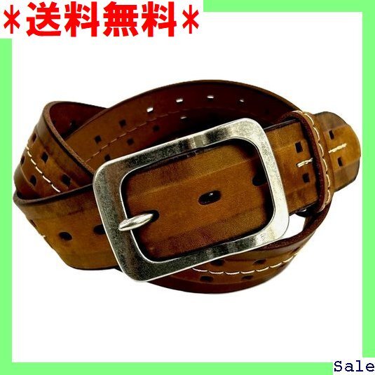 > ☆人気商品 HANG OVER 栃木レザー 4.0㎝ ステッチ パンチング 栃木レザーベルト 日本製 本革 ヌメ革 57
