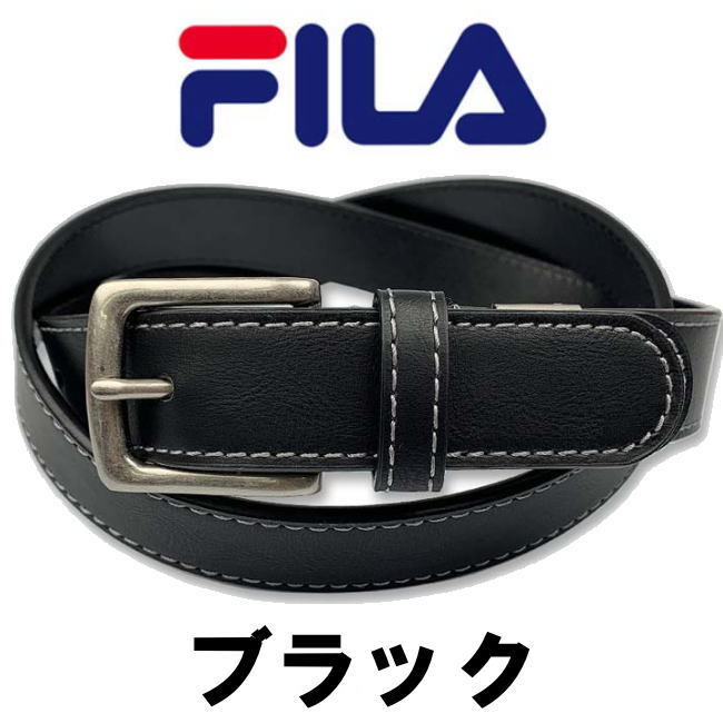 - ブラック FILA 01 フィラ ベルト ロゴ ビジカジ ベルト 2.8cm 黒