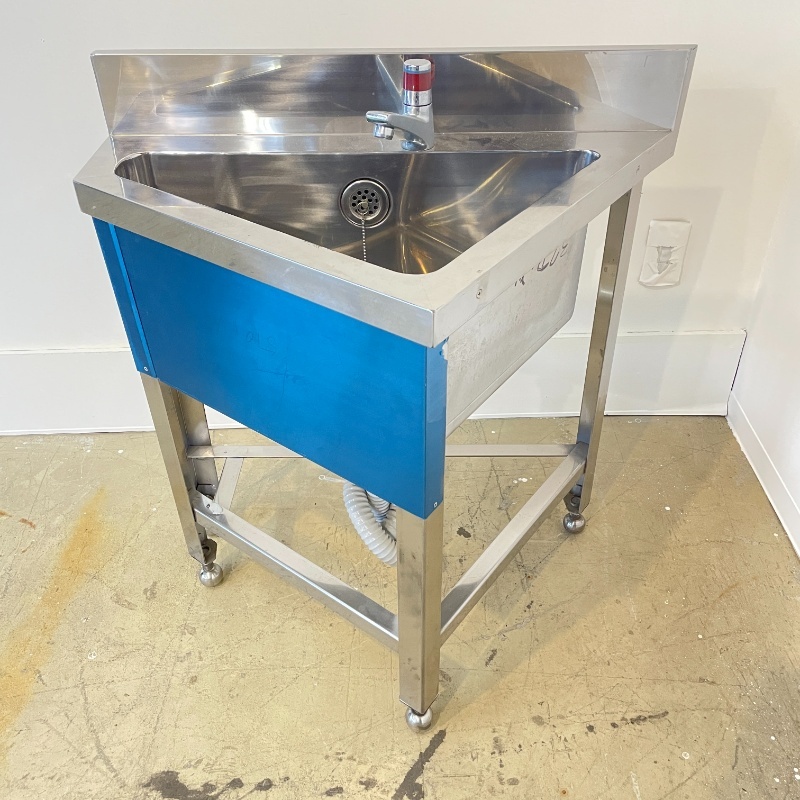 - 北海道・九州・沖縄・離島追加送料有【中古】 業務用 ステンレス 三角1槽シンク BG付 幅740×奥行455×高700mm (A029) 厨房機器