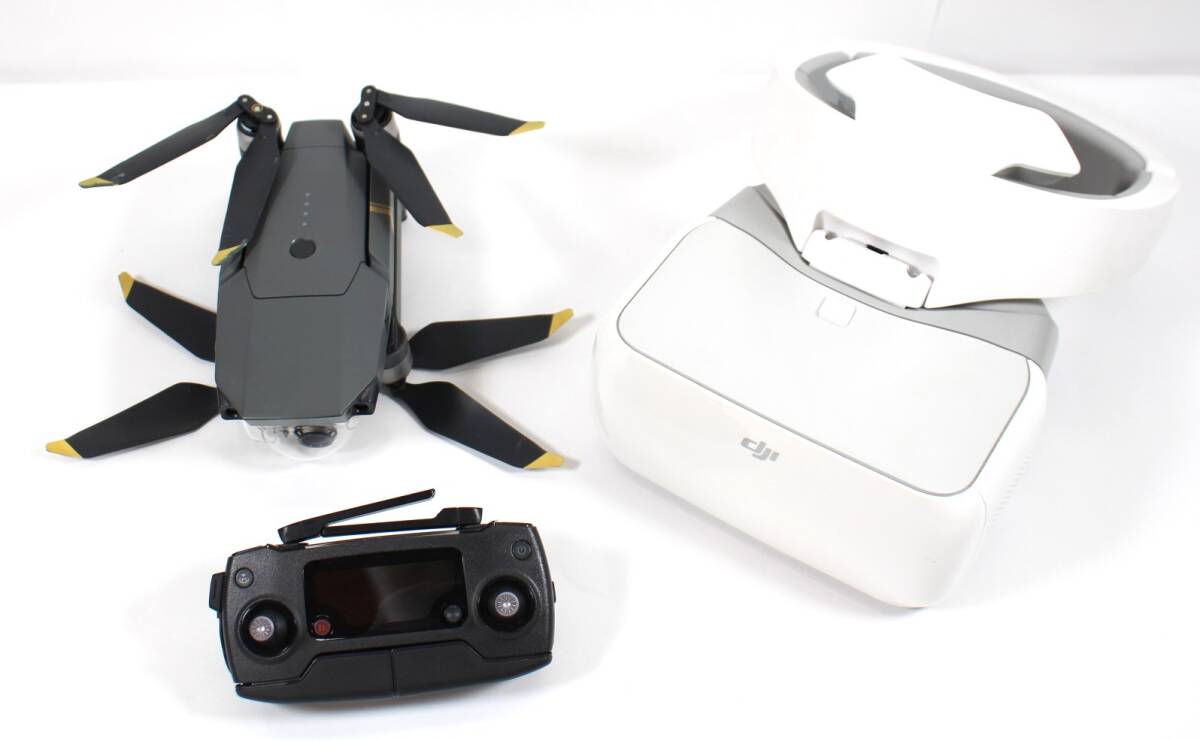 > Y6965#◆ジャンク品◆DJI MAVIC PRO(機体・ 送信機・充電器)ドローン & DJI GOGGLES ※バッテリー充電出来ず・通電・詳細未確認