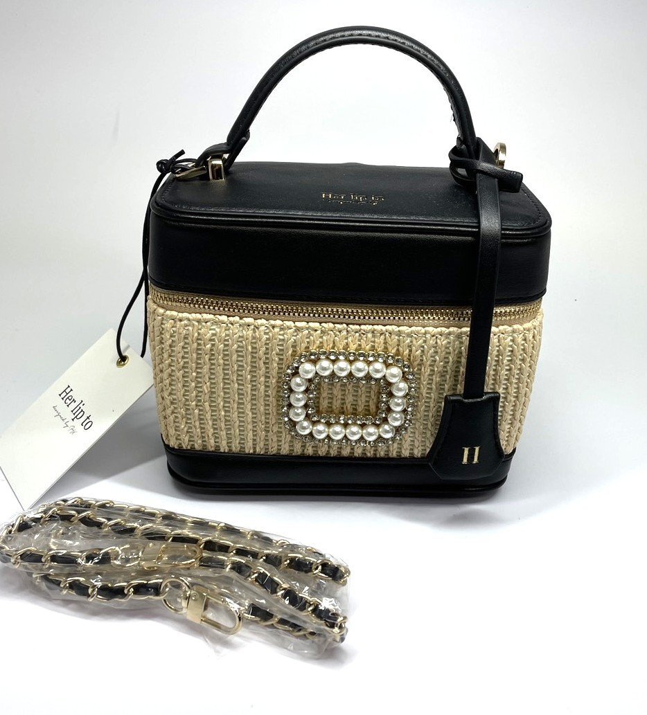 > her lip to ハーリップトゥ かごバッグ チェーンショルダーバッグ raffia effectcrystal vanity bag ハンドバッグ