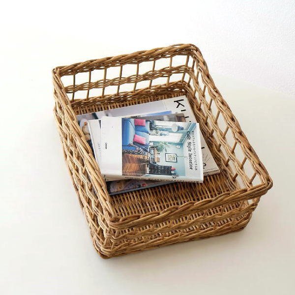 - かご カゴ ラタン バスケット スクエア おしゃれ リビング 編みかご キッチン アラログスクエアバスケット 送料無料(一部地域除く) cle7246