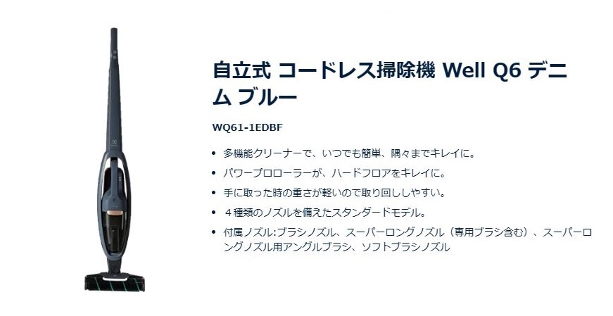 - ◆送料無料◆新品◆Electrolux エレクトロラックス◆自立式 コードレス掃除機 Well Q6 デニム ブルー◆WQ61-1EDBF◆即決◆
