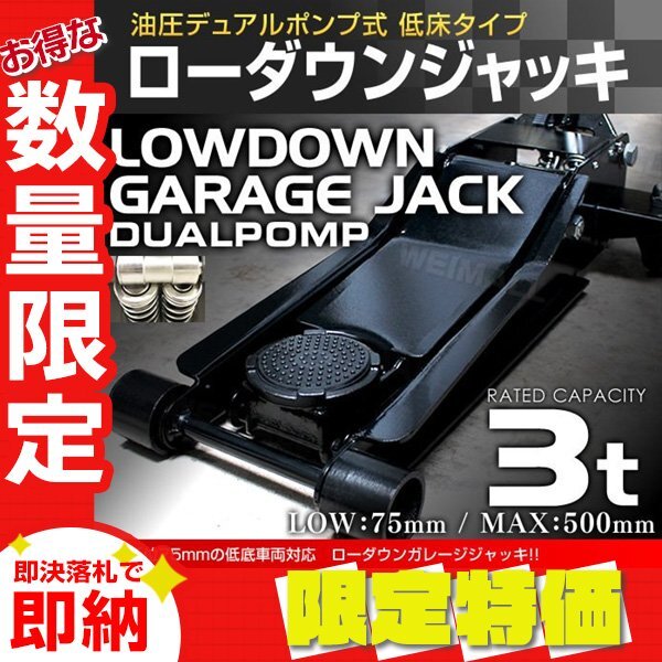 > 【限定セール】新品 ローダウン フロアジャッキ 耐荷重3t 最低位75mm 低床 ガレージ ジャッキ 保護用ゴムパッド付 タイヤ 交換 整備