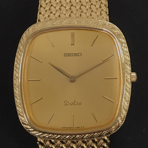 > セイコー DOLCE ドルチェ 8N40-5040 クォーツ メンズ 腕時計 スクエアフェイス ゴールドカラー文字盤 純正ベルト