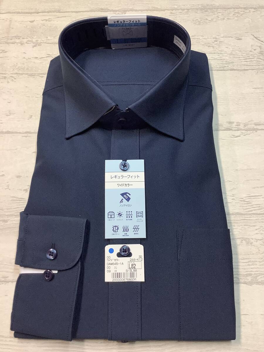 > 新品未使用 カッターシャツ ★41-82 長袖Lサイズ ポリエステル100% スーパーストレッチ素材 ★ワイドカラードレスシャツ ★濃紺