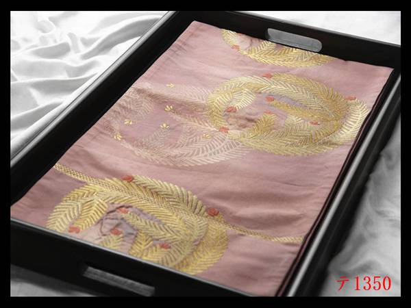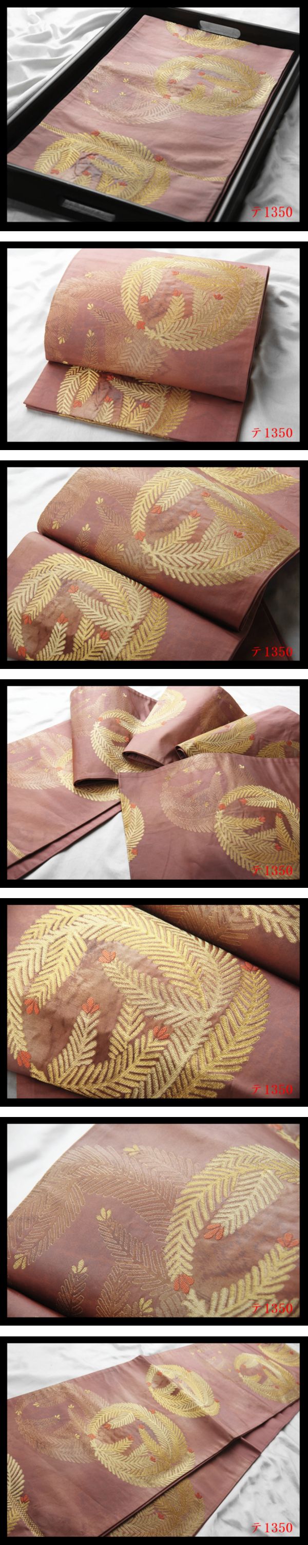 > 蔵【テ1350】西陣美品 松の丸紋 蘇芳香色地 気品豊かに 正絹純金糸六通高級美術袋帯 ◇検◇簪着物名古屋帯和装小物帯締め