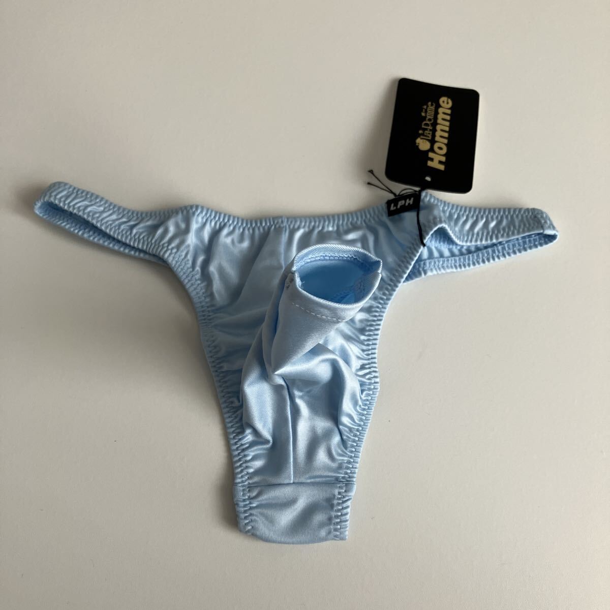 - ラポームオム メンズ La-pomme homme K2S生地 光沢感 快適性 独立性 貫通型ゾウさん Tバックビキニ サックス M