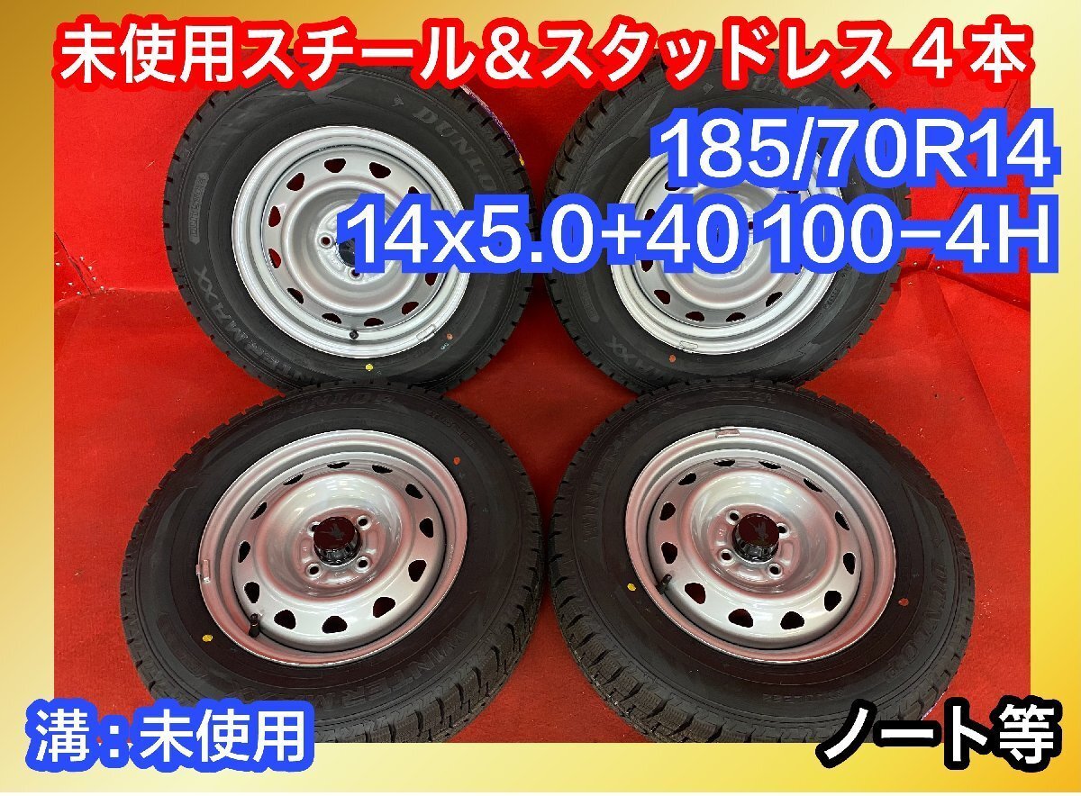 - 【送料無料】185/70R14 14x5.0+40 100-4H ノート等 新品タイヤ&スチールホイール4本SET