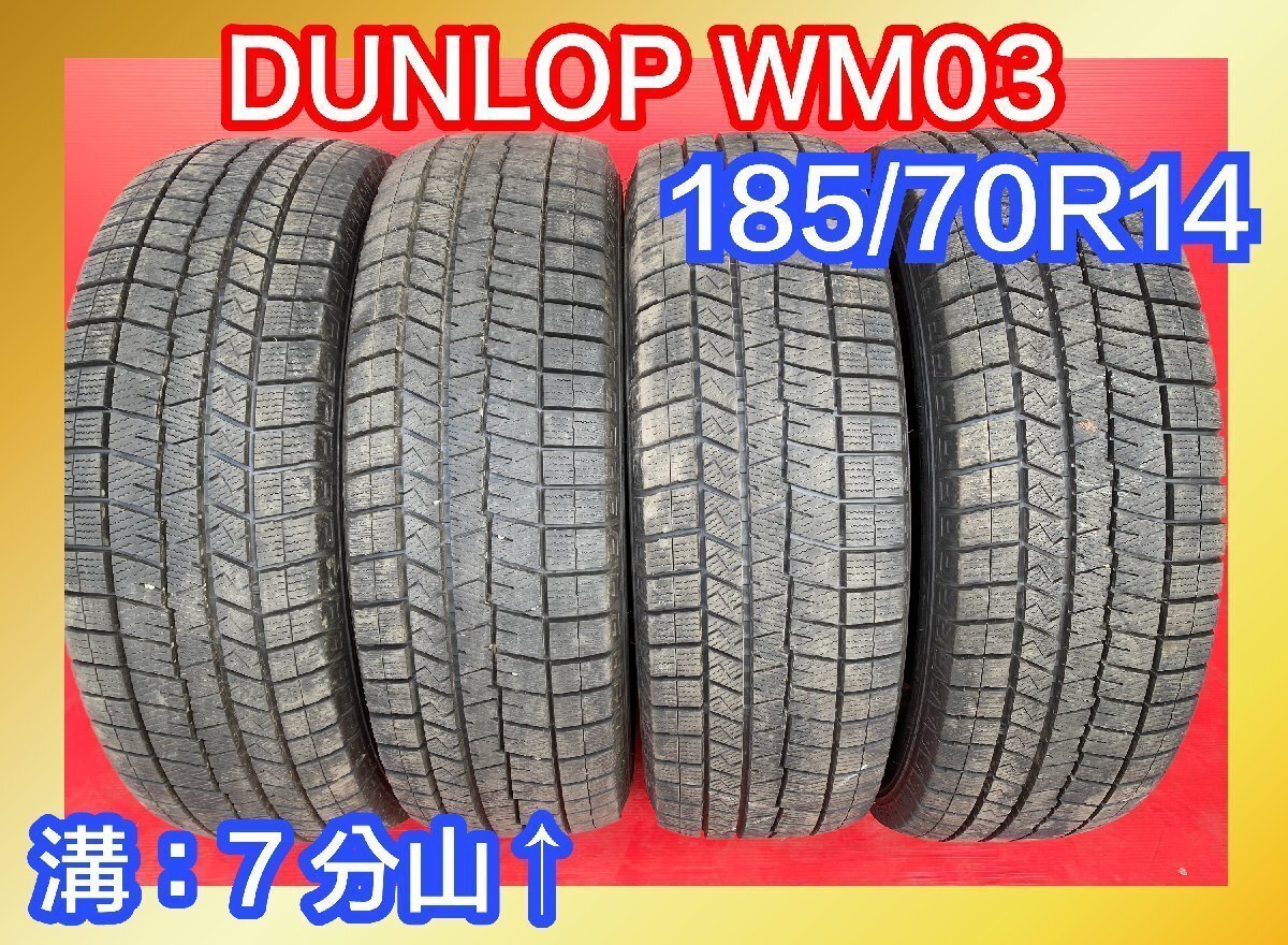 - 【送料無料】中古スタッドレスタイヤ 185/70R14 2018年製↑ 7分山↑ DUNLOP WM03 4本SET【41999374】【46682195】