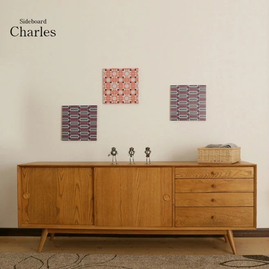 > サイドボード 幅175cm ミドルタイプ オーク リビング収納 チェスト リビングボード 収納 北欧 木製 棚 シャルル 送料無料