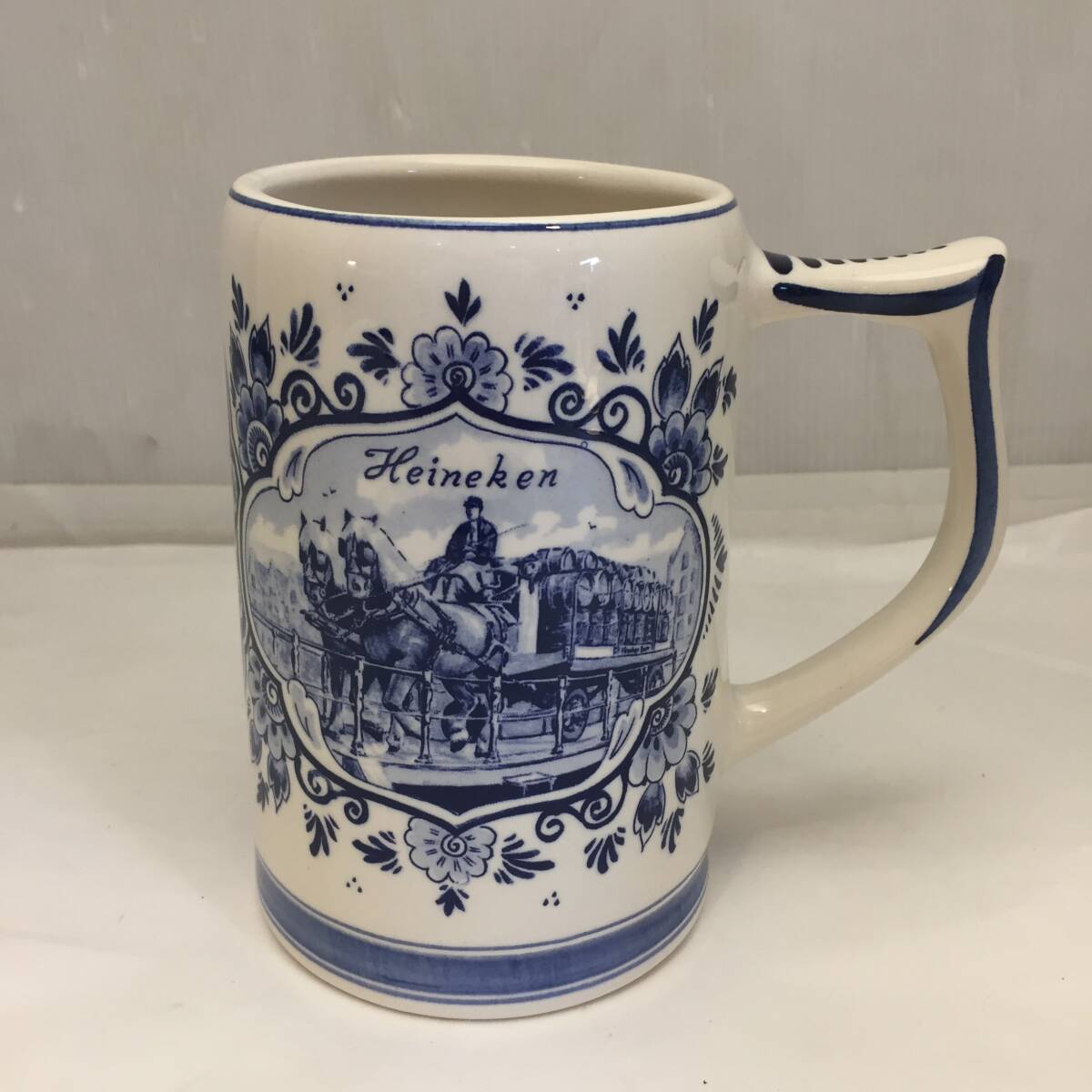 - F091902◎Heineken ハイネケン ビアマグ ジョッキ デルフトブルー 陶器 オランダ 口径約8㎝×高さ約13.5㎝◎