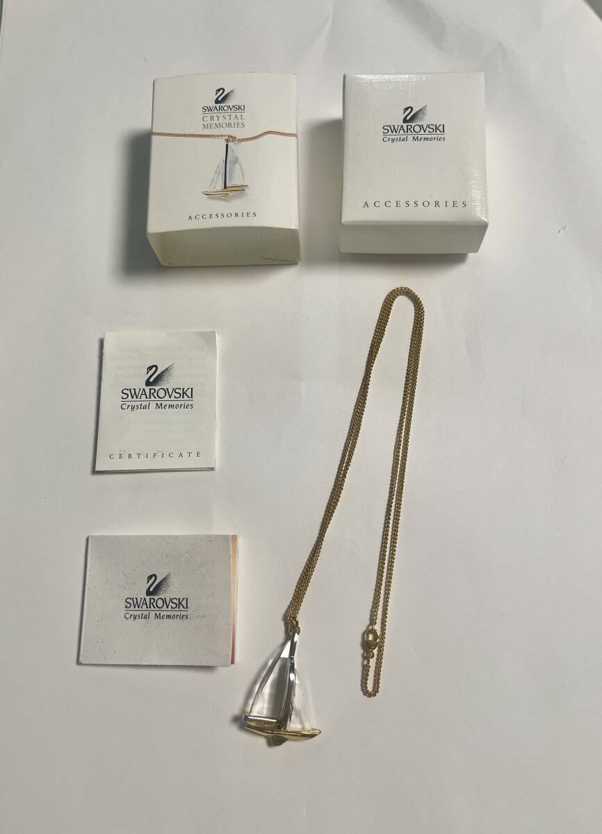 - 美品スワロフスキー ヨットモチーフペンダントトップネックレス 船 ゴールドカラー 説明書 外、内元箱付