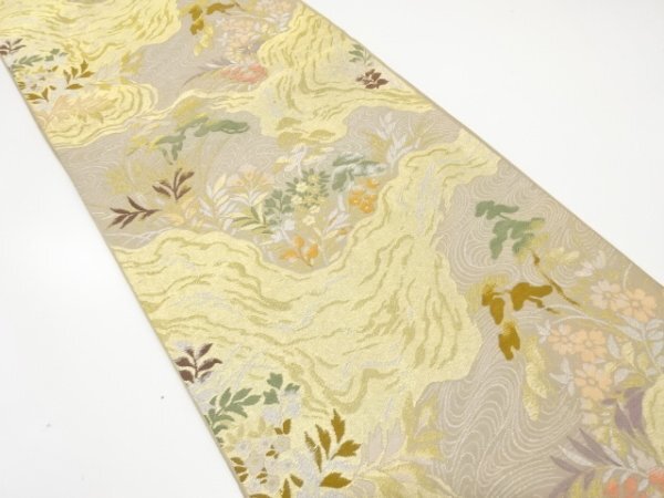 > ys7529507; 霞に笠松・草花模様織り出し袋帯(材料)【アンティーク】【着】