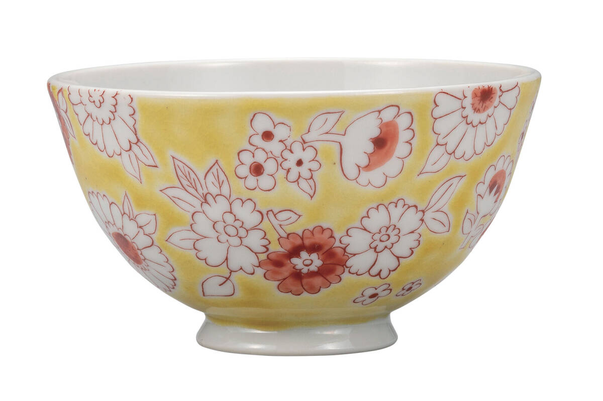 - 九谷焼! ☆フラワーシャワー(黄)・ご飯茶碗☆ 新品 K9-473 飯碗 飯茶碗 丼 どんぶり 鉢 多用丼 碗 プレート ギフト