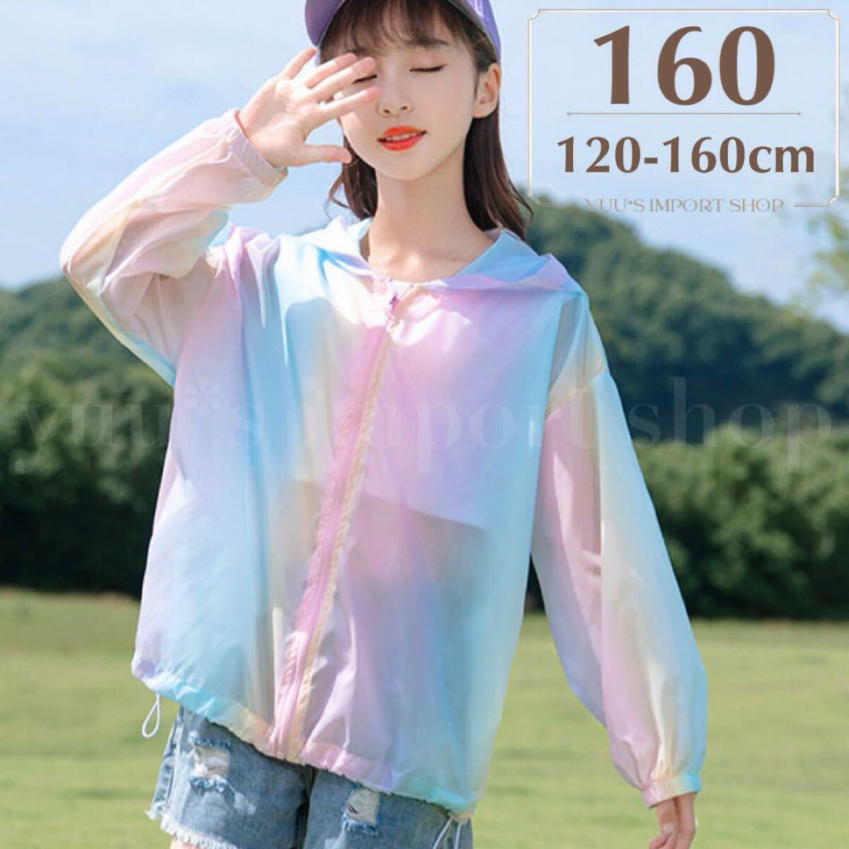 > パーカー 女の子 男の子 兼用 ユニセックス 160 秋 フード 長袖 体温調節 ラッシュガード UVカット レインボー 虹 ピンク