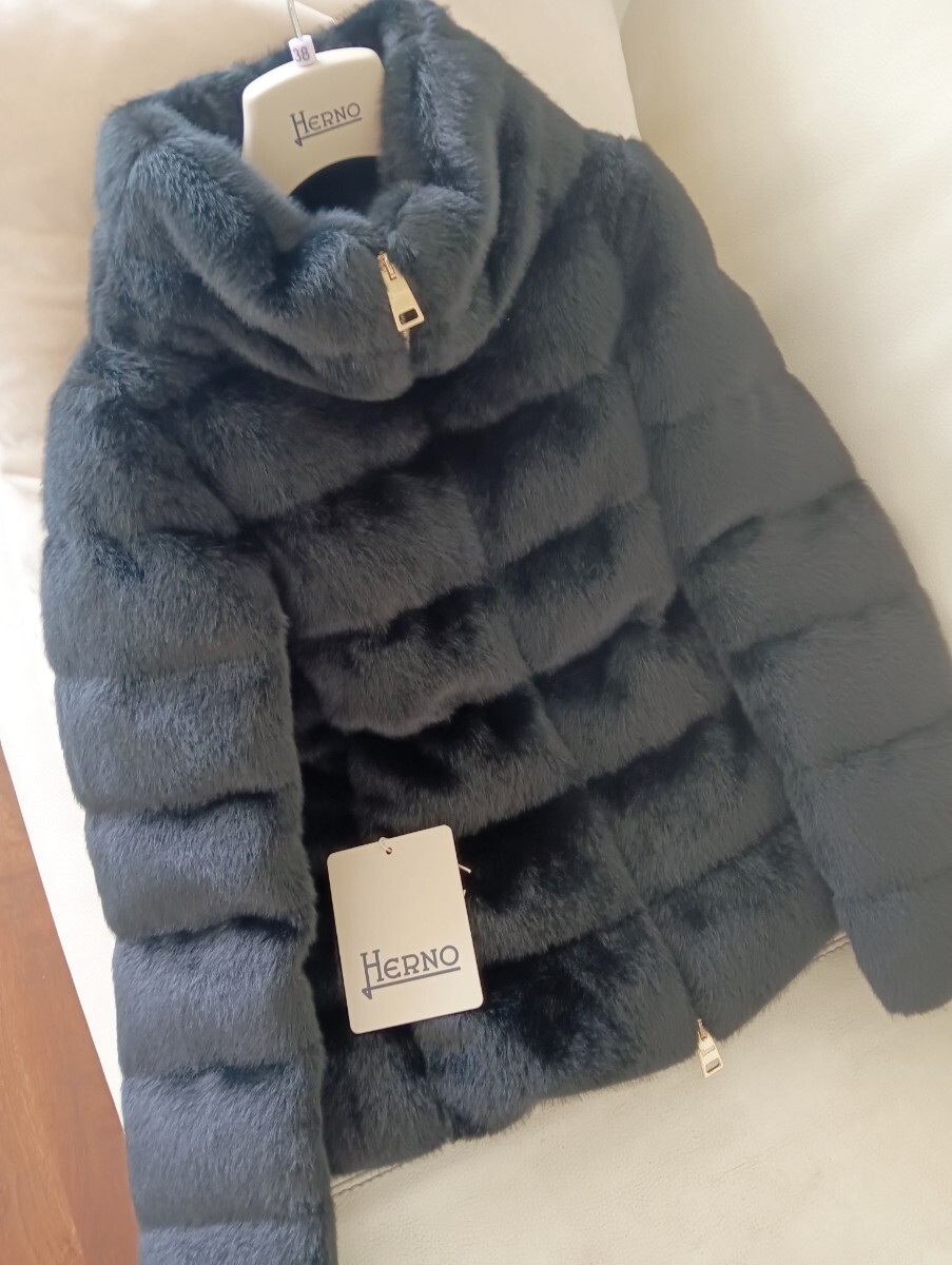 - Herno ヘルノ ブラック ファー ダウンジャケット ダウンコート ショート アウター 黒