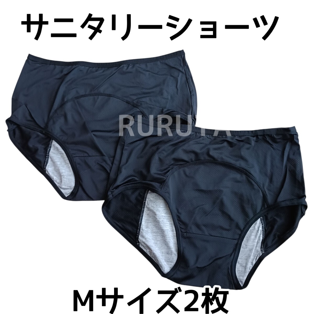 - Mサイズ サニタリーショーツ ブラック 黒2枚 生理用 (サイズ表記はL)メッシュ素材
