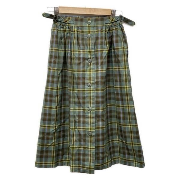 - ヨークランド YORKLAND スカート - ブルーグリーン×ブラウン×マルチ レディース ひざ丈/チェック柄 ボトムス