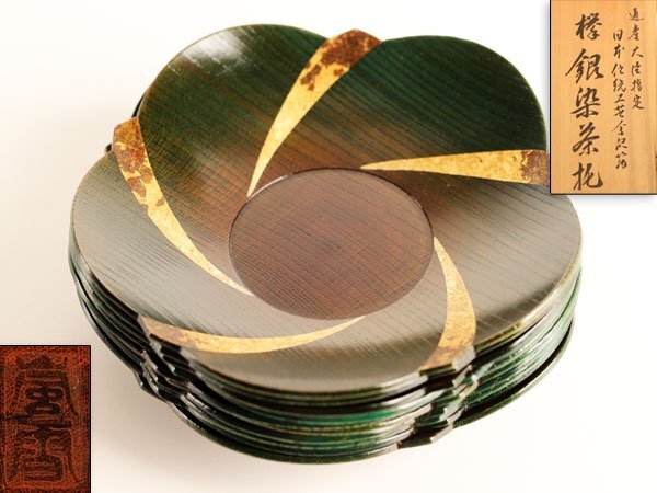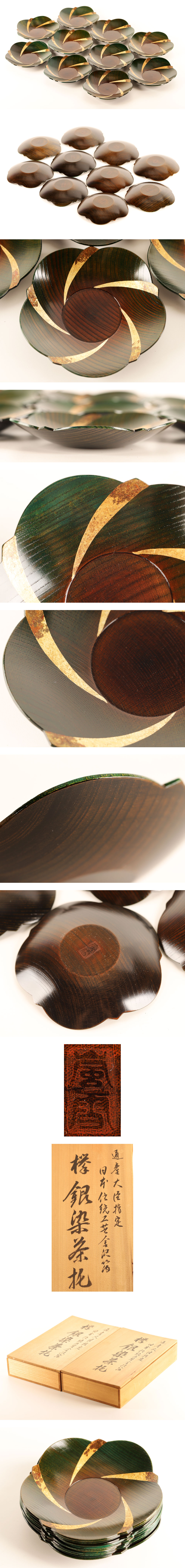 【流】日本伝統工芸 金沢箔 銀染茶托十客 共箱 LC065