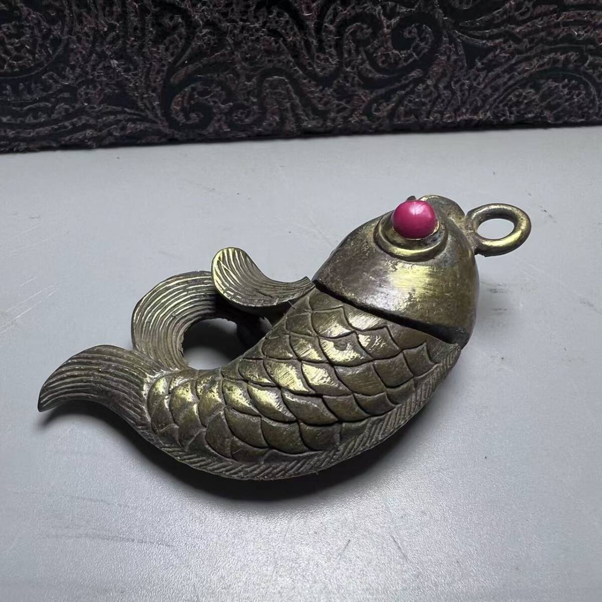- 旧家蔵出し 銅製細作 寶石嵌 魚躍龍門紋 ペンダント 経年加持 風水賞物 極細工 置物擺件 美術品 旧家蔵出 旧家供養品