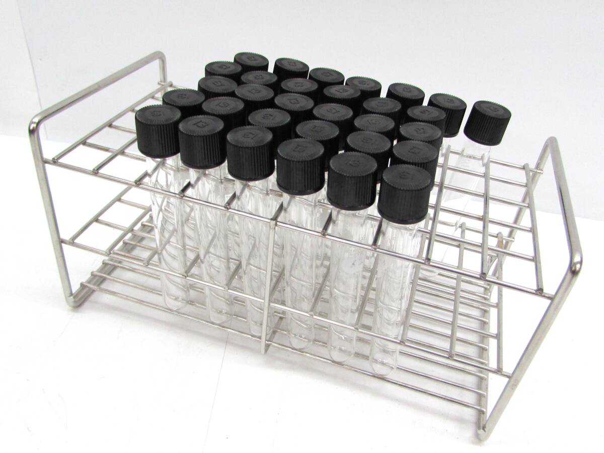 - レトロ 三和化研 サンワカケン 試験管立 18mm 50本 / パイレックス ネジ付試験管 キャップ付 13×31本 ネジ口 スクリューキャップ