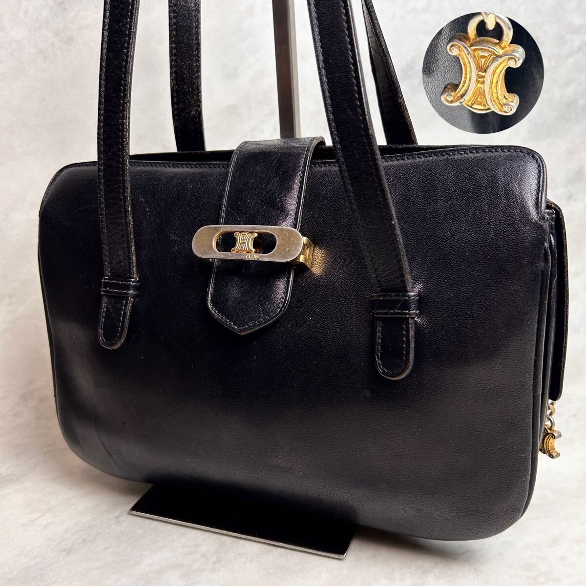 > 【希少】CELINE セリーヌ トリオンフ 金具 オールド オールレザー 本革 ハンドバッグ ブラック