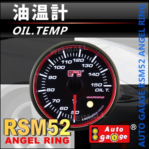 > オートゲージ 油温計 OILTEMP 52Φ エンジェルリング スイス製モーター ワーニング機能付 ブラック autoguage 52RMOTB