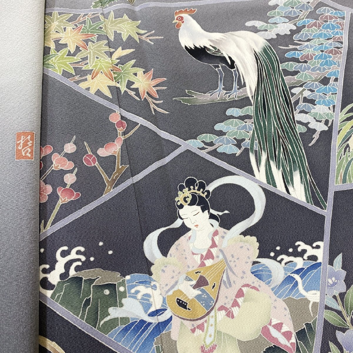 > 着物月花 柏田屋 田村哲彦 加賀草木友禅 手描き友禅 十二支 天女 訪問着 正絹 共八掛 一つ紋 縫紋 ガード加工 ki5943
