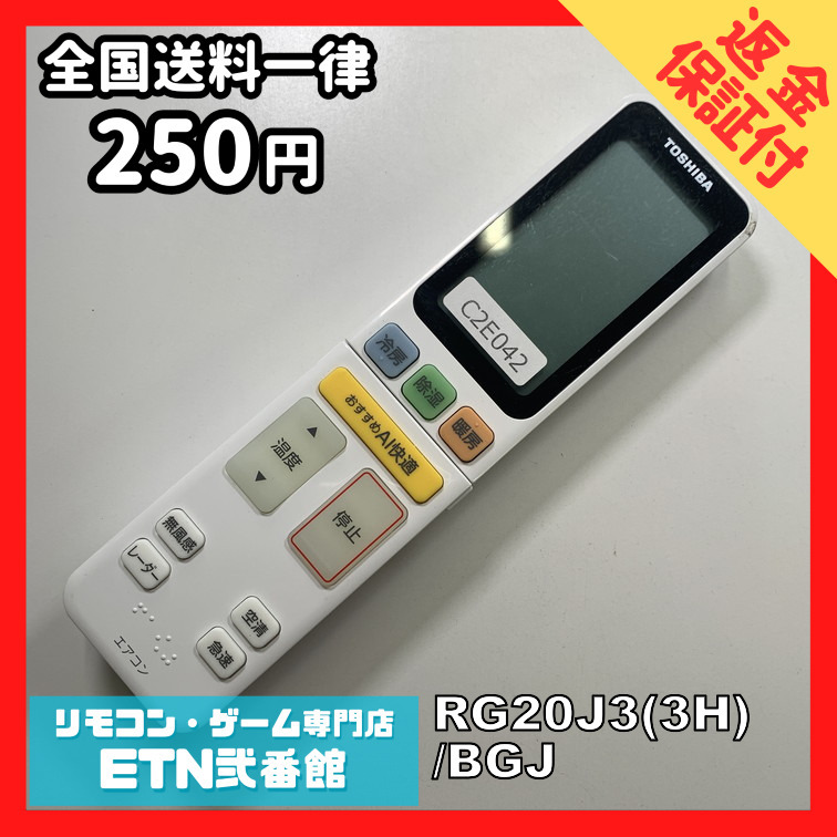 C2E042 【送料250円】エアコン リモコン / TOSHIBA 東芝 RG20J3(3H)/BGJ 冷房 暖房 動作確認済み★即発送★
