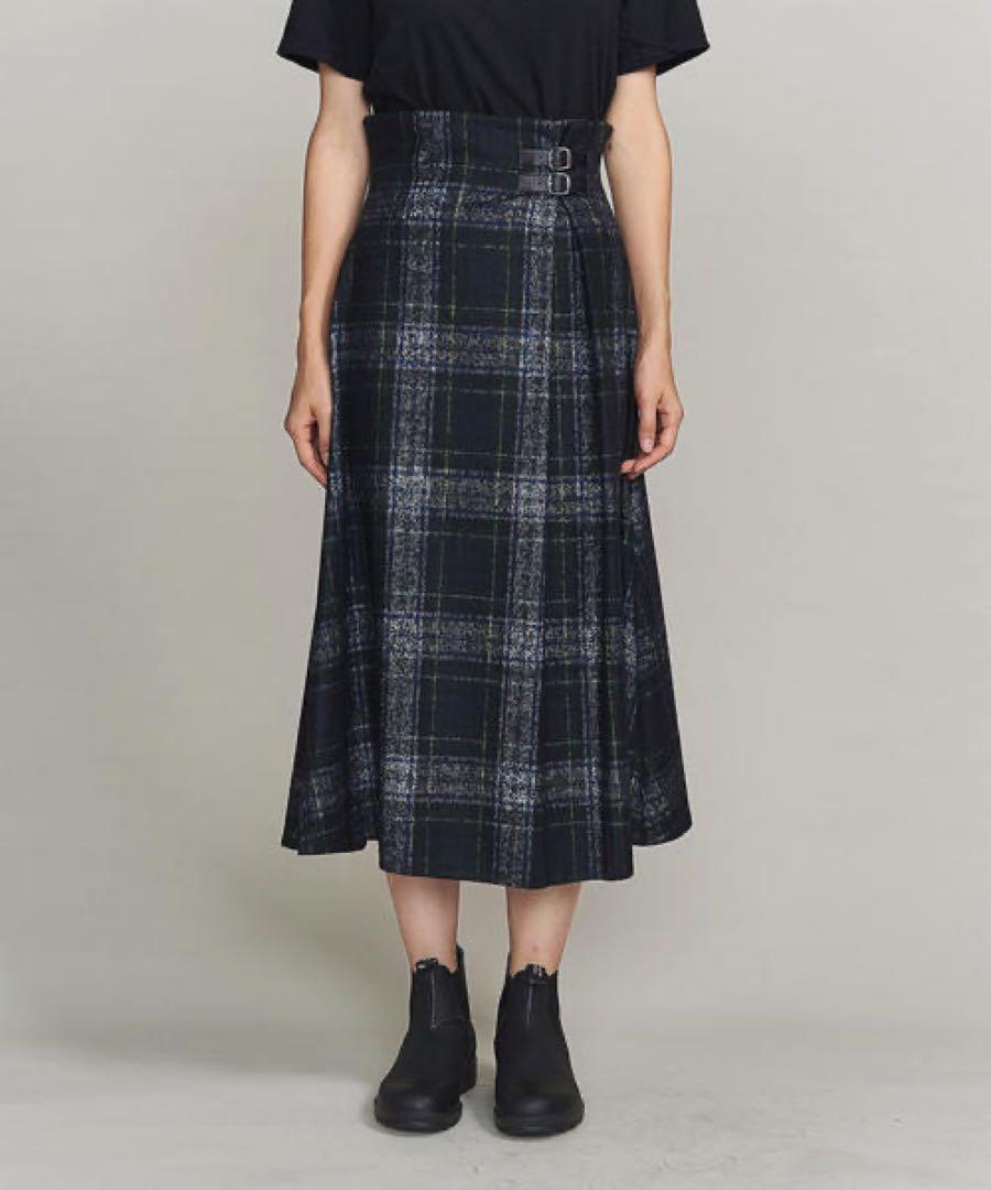 - 美品 O'NEIL of DUBLIN オニールオブダブリン チェック柄 バックルスカート Mサイズ相当 チェック サイドベルト ミモレ丈 ウール
