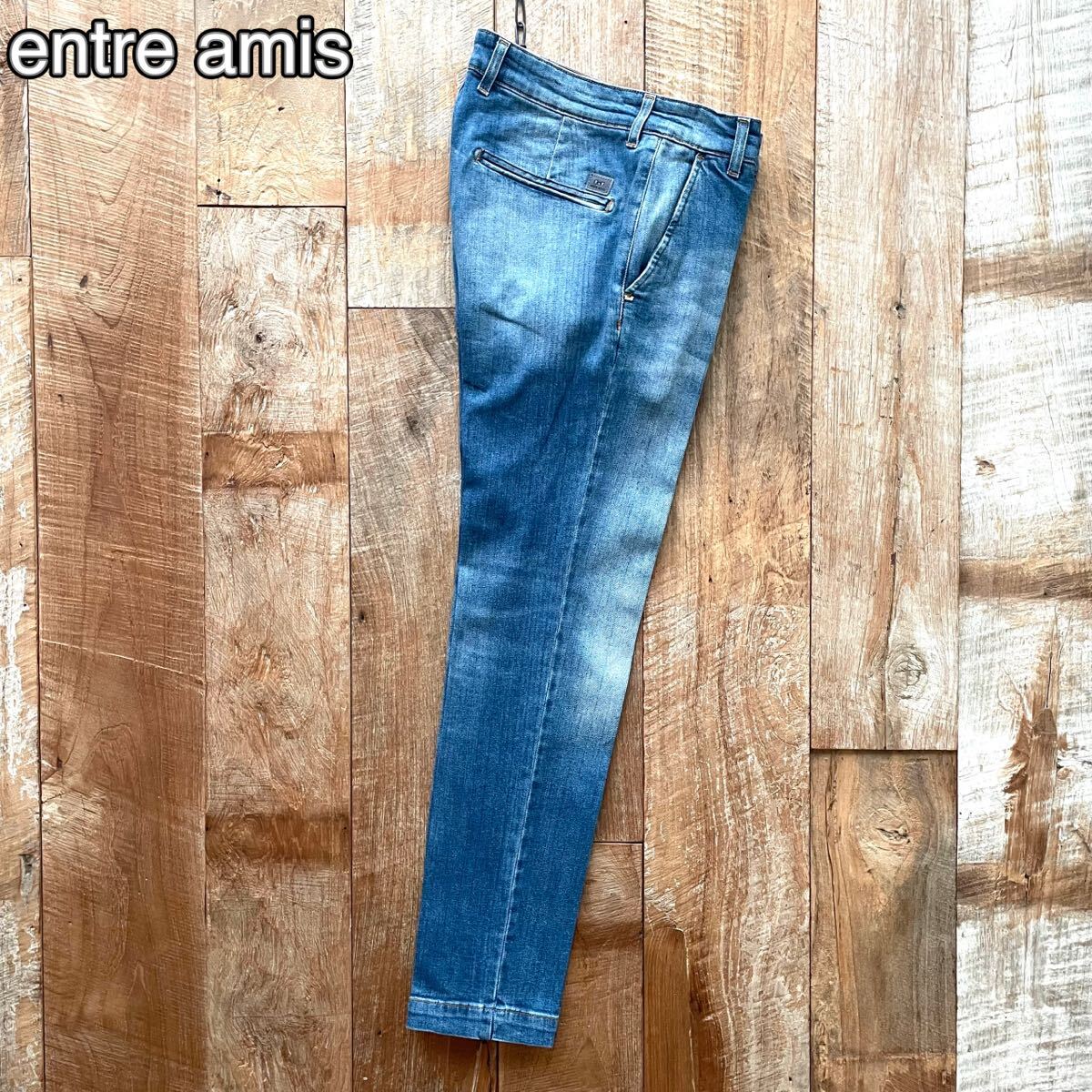- 【美品】entre amis アントレアミ テーパード デニム スラックス パンツ 31 ブルー ストラスブルゴ取扱