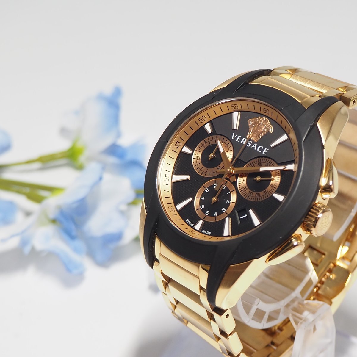 > ヴェルサーチ VERSACE クロノグラフ デイト メデューサ メンズ 腕時計 F986 ゴールド 中古
