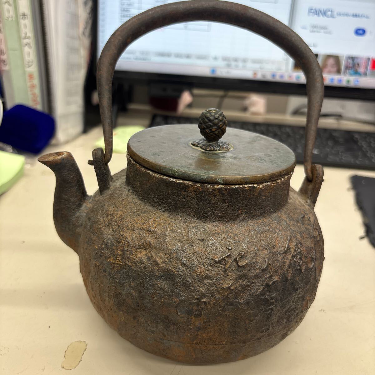 - N10213【アンティーク】鉄瓶 大國寿朗 晴寿堂